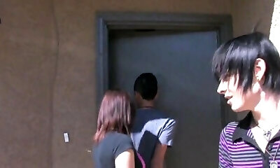 Hot teenage slut and two guys in a wicked bi sex